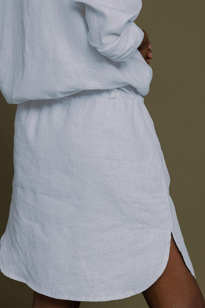Subtle sophistication and contemporary style come together in this oversized, collared shirt dress in blue with a front pocket and adjustable drawstring.