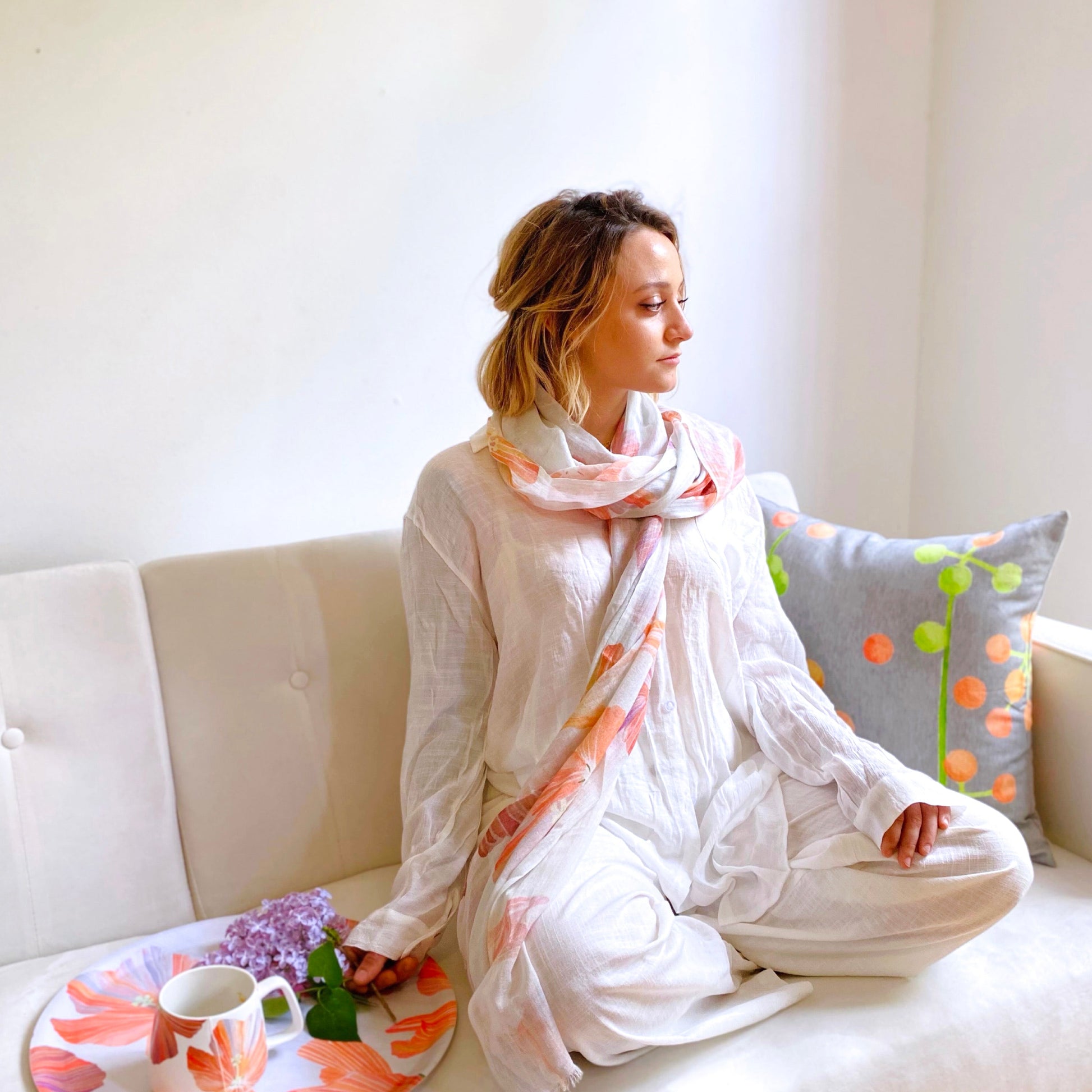 Luxurious all season scarf. Doubles as an airy shawl or sarong.