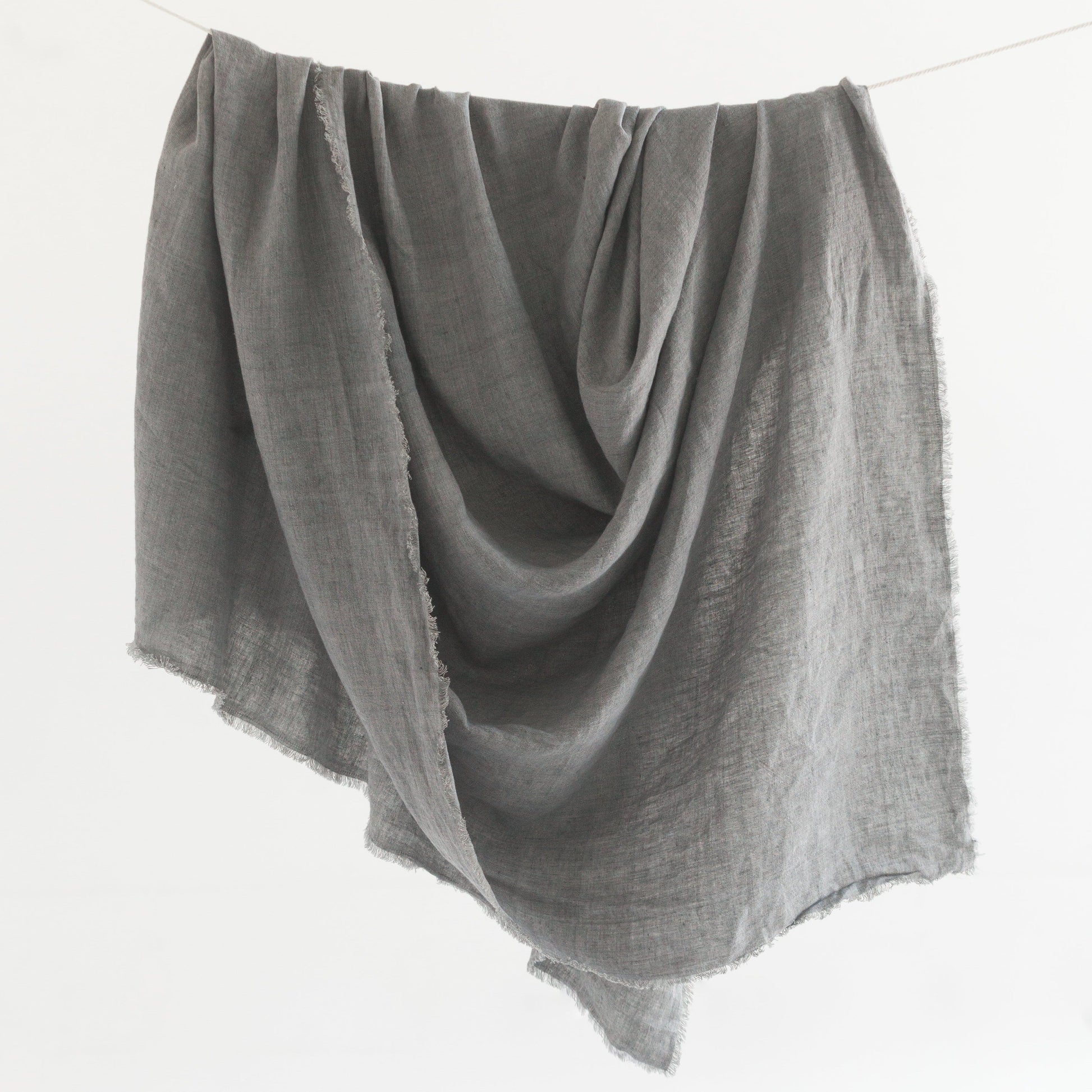 This versatile stone washed linen blanket is a generously sized 84 x 60 inches and is the perfect weight and softness for those quiet, cozy moments at home. Frayed edges add texture and depth. Colors may slightly vary due to small-batch dying.