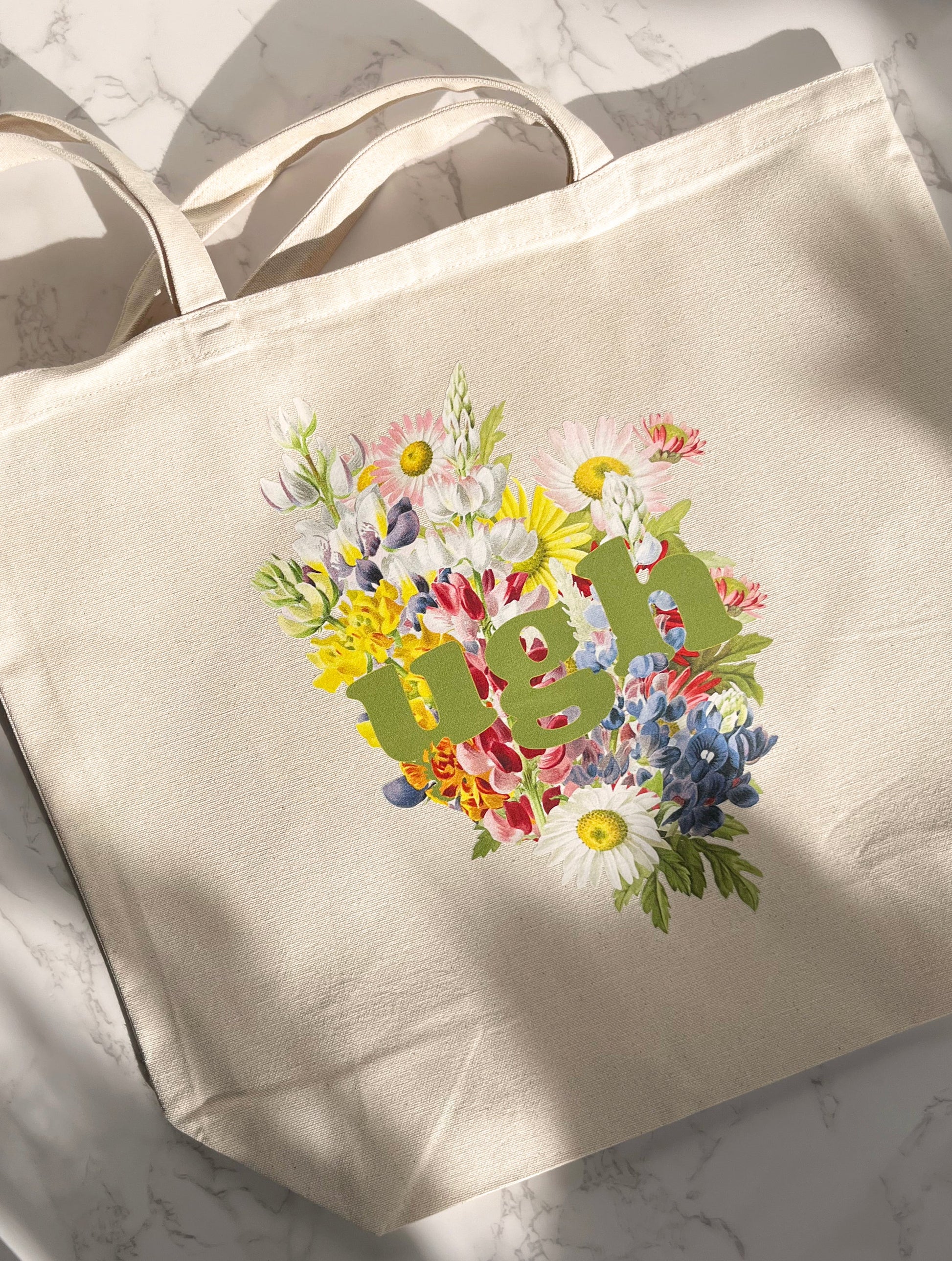 Amp up your everyday shopping with the cute and funny Ugh Farmer's Market Tote. This retro-inspired tote features beautiful flowers and is crafted from durable cotton canvas, so you can enjoy shopping at the farmer's market with style and ease! Experience the joy of shopping with a bag that's both timeless and fancy - what's not to love?
